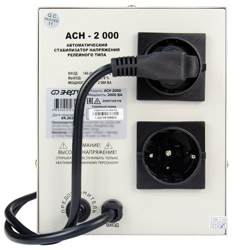 Технические характеристики стабилизатора напряжения Энергия АСН-2000