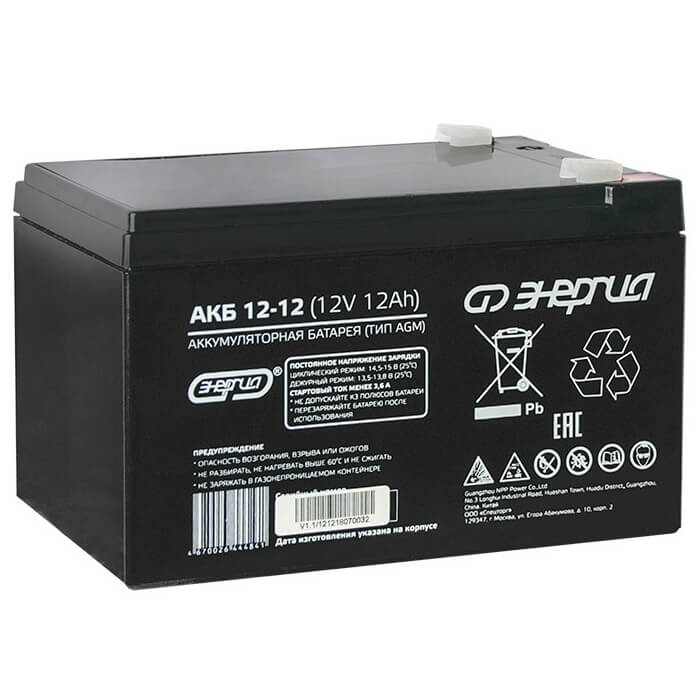 Аккумулятор Энергия АКБ 12-12 выполнен по технологии AGM с использованием материалов высокой чистоты, что обеспечивает великолепные разрядные характеристики и заметно продлевает срок службы аккумулятора. Корпус батареи изготовлен из высококачественного ударопрочного пропилена, имеющего повышенную устройчивость к воздействию агрессивных химических реагентов и механическим воздействиям. Прочный, безопасный и герметичный корпус аккумулятора позволяет использовать его в жилых помещениях и в условиях перепада температур.