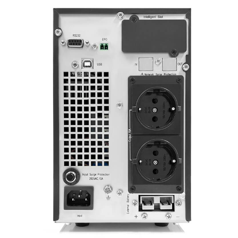 ИБП выполнен по современной технологии «on-line», заключающейся в преобразовании переменного тока в постоянный и его последующей регенерации обратно в переменный. При таком режиме аккумуляторы включены в работу постоянно, и, переход на питание от аккумуляторов происходит мгновенно. А выходное напряжение не подвержено влиянию колебаний в электросети, и поддерживается с высокой точностью и идеальной синусоидальной формой в широком диапазоне колебаний и скачков входного напряжения (110 – 288 В).