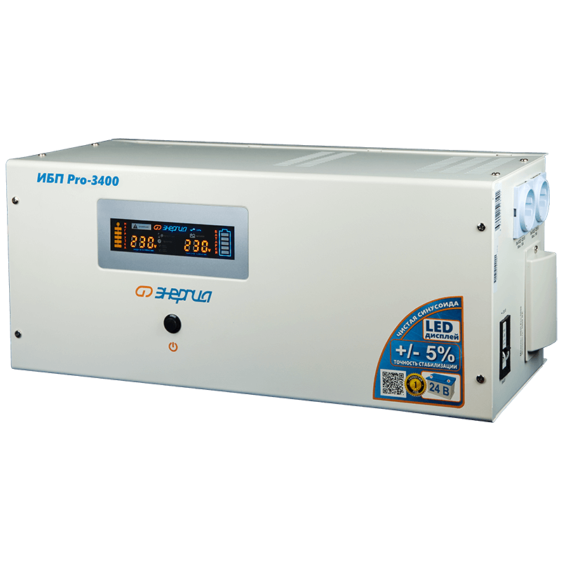 Скачать сертификатЭнергия ИБП Pro 3400 используется в системах бесперебойного питания с внешними аккумуляторами и позволяет подобрать количество и ёмкость АКБ под требуемое время автономной работы. Благодаря цифровому ШИМ-преобразователю, инвертор выдаёт чистую синусоиду, что делает возможным использовать его с такими чувствительными приборами как газовые котлы, медицинское оборудование, и в других случаях, когда обычные ИБП с модифицированной синусоидой использовать нельзя.