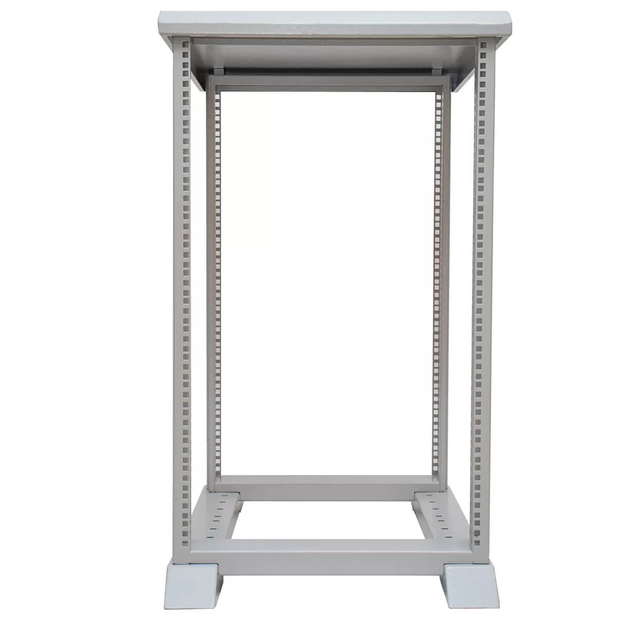 19-дюймовая стойка Штиль R-18-02 состоит из двух перфорированных рам (сваренных по всему контуру) и двух опор из стального профиля толщиной 2 мм. Сверху установлена крышка из стального профиля толщиной 1.5 мм, которая обеспечивает повышенную жесткость конструкции.