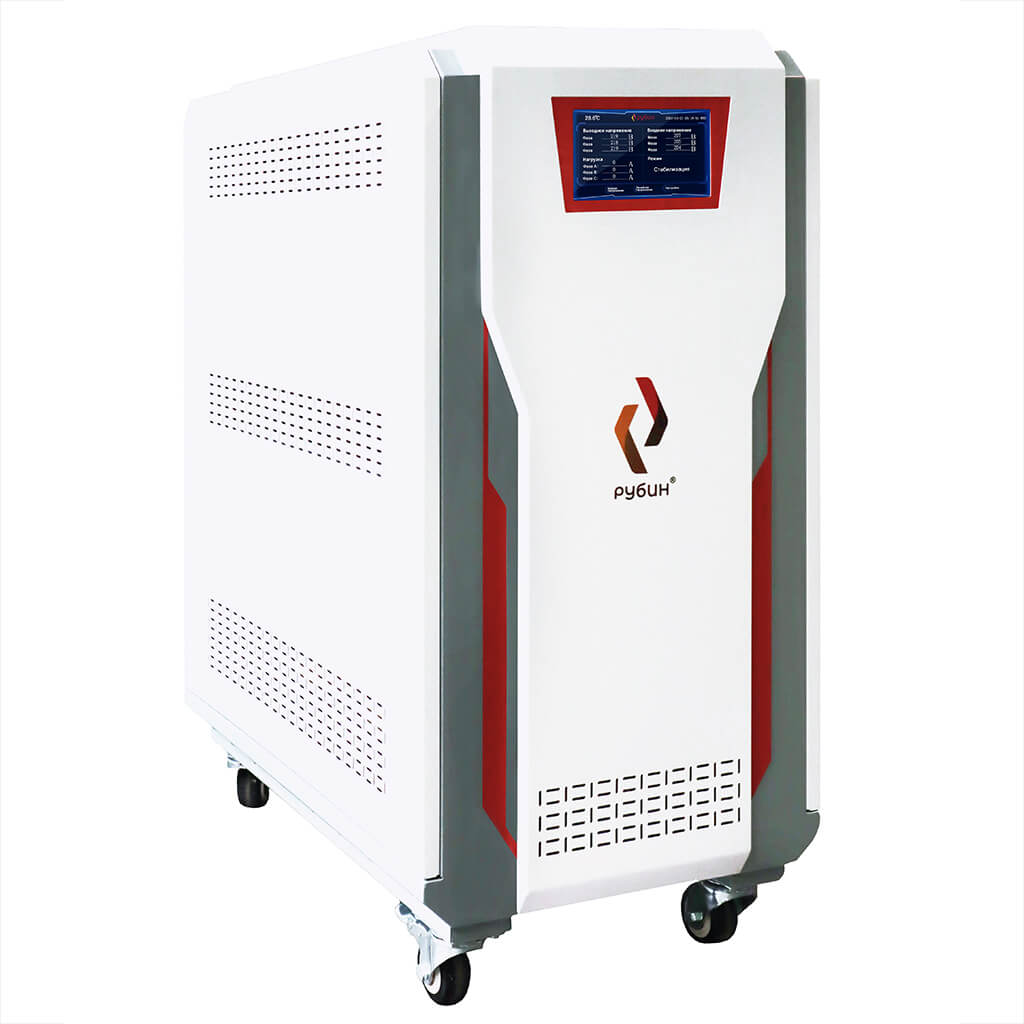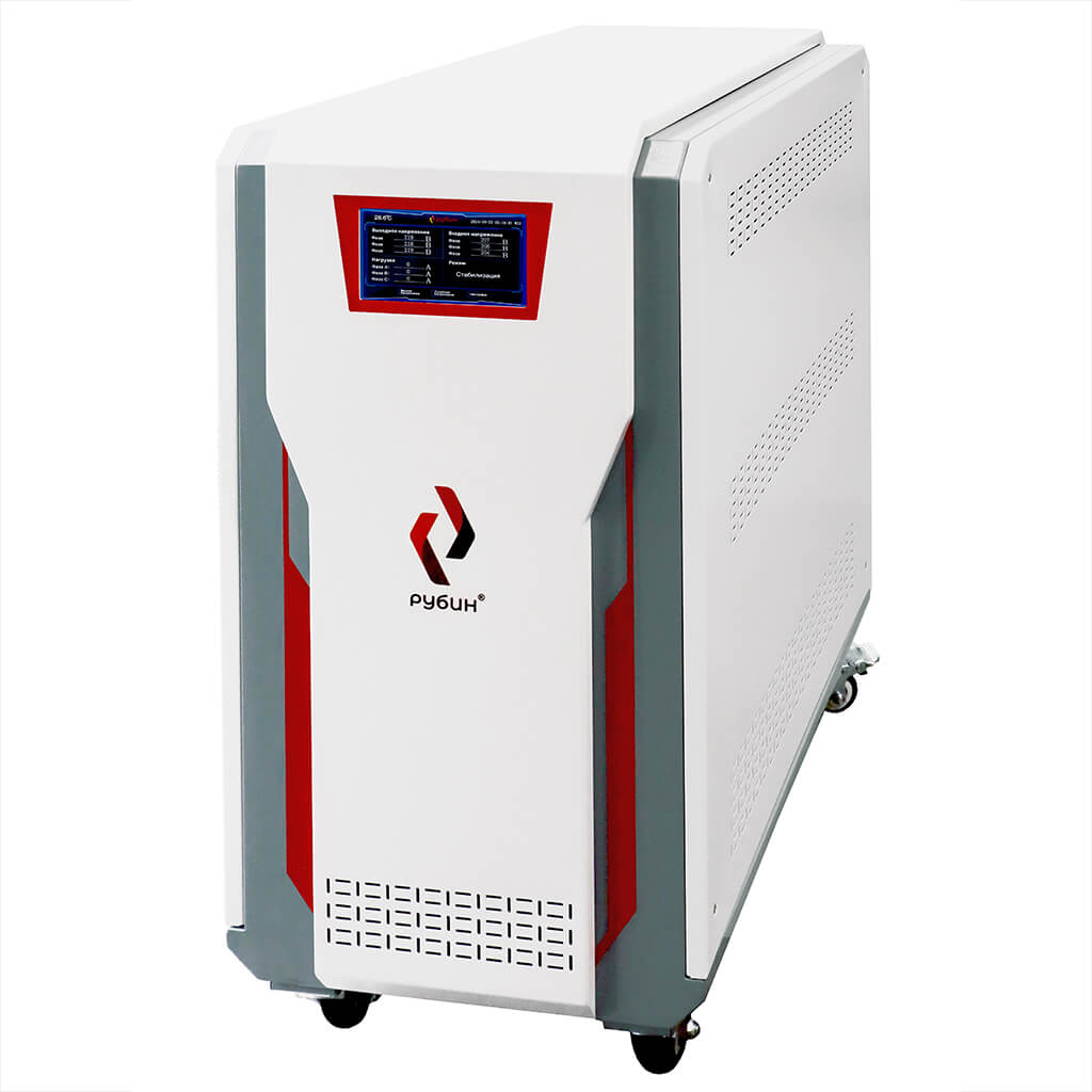 Стабилизатор Рубин ТСН-15000/3 относится к классу электронных стабилизаторов, его работа основана на полупроводниковых элементах (тиристор), что обеспечивает абсолютную бесшумность, высокую скорость реакции на изменение напряжения и идельную защиту. Стабилизатор имеет современное микропроцессорное управление с двойным резервированием и оснащен многофункциональным информационным сенсорным дисплеем.