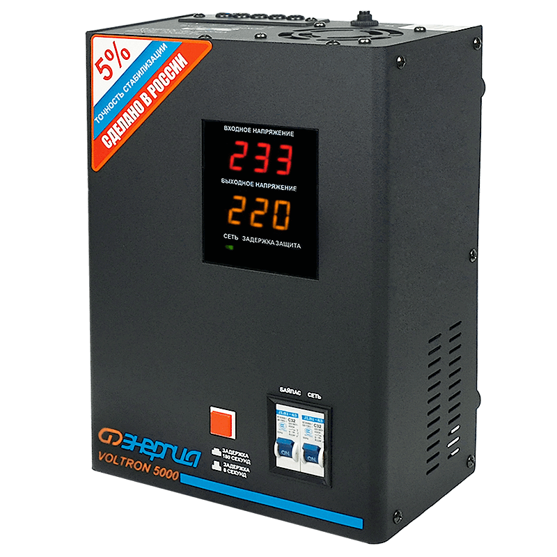 Стабилизаторы серии Энергия Voltron это оптимальное соотношение цена/качество для случаев, когда установка стабилизатора производится в неотапливаемых помещениях (дачи, летние домики, гаражи и т.п.) в условиях значительных просадок и скачков напряжения, когда требуется высокая точность стабилизации (насосы, холодильники и др. бытовая техника), а к качеству и надежности стабилизаторов предъявляются повышенные требования.